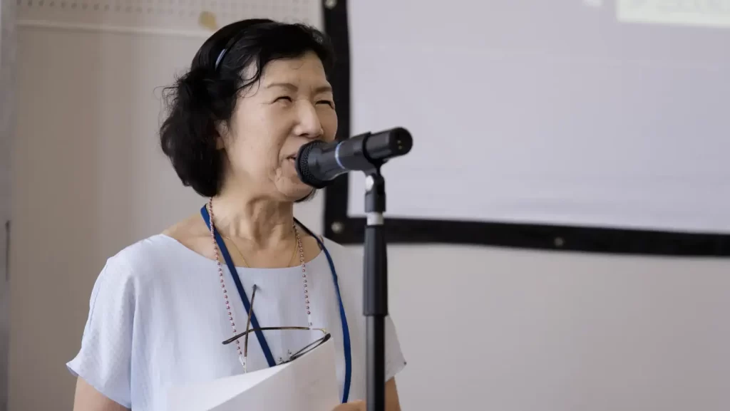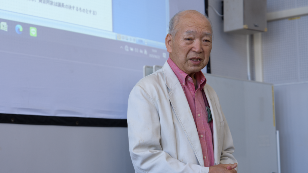 総会では、会則の一部変更が承認されました。司会は長島事務局長でした。